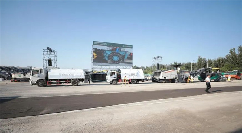 在現(xiàn)場演示環(huán)節(jié),在場的嘉賓及客戶都對新技術(shù)表現(xiàn)出了濃厚興趣,通過現(xiàn)場可以看到 W 380 CR 機隊一條再生的工藝,可以直觀感受就地冷再生流程。通過現(xiàn)場講解人員的講解,可以清晰地了解這項工藝的特點,為什么可以具有如此多經(jīng)濟和環(huán)保效益的原因。