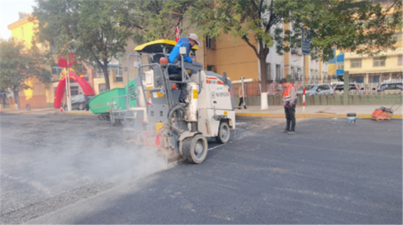 項(xiàng)目前期,施工方預(yù)先采用了 2 臺維特根大型銑刨機(jī),對舊道路面層進(jìn)行銑刨移除。維特根2米檔大型銑刨機(jī),配備 WIDRIVE 智能銑刨系統(tǒng),通過 LEVEL PRO PLUS 毫米級自動找平系統(tǒng),實(shí)現(xiàn)銑刨面的高平整度,為后續(xù)的攤鋪?zhàn)鳂I(yè)的平整度打好基礎(chǔ)。同時還配合了 2 臺小型銑刨機(jī),就像微整形手術(shù)刀一樣,對道路邊緣、井蓋周邊的邊角區(qū)域進(jìn)行靈活移除,節(jié)約人工而且效率更高。