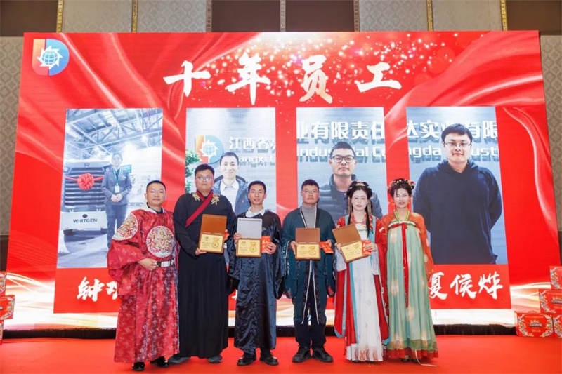 在近一個多小時的歡慶之后,江西亮達的十年員工鐘歡、曾纛、謝科強和夏侯燁紛紛走上臺前,分享了他們在公司十年間的點點滴滴。他們的話語中充滿了對江西亮達的深情和感激,讓在場的每一位觀眾都深受感動。隨后,董事長顏總和總經(jīng)理盧總親自上臺為這些老員工頒發(fā)了獎項,這不僅是對他們多年辛勤工作的肯定,也激勵著臺下的年輕員工,展示了公司對員工的重視和對未來的期望。十年的志同道合,十年的風(fēng)雨同舟,十年的同甘共苦;這一刻,是江西亮達團隊凝聚力和堅持精神的生動體現(xiàn),希望新的一年老員工和新員工們可以齊心協(xié)力,在公司中謀求更好地發(fā)展,實現(xiàn)自己的個人價值。